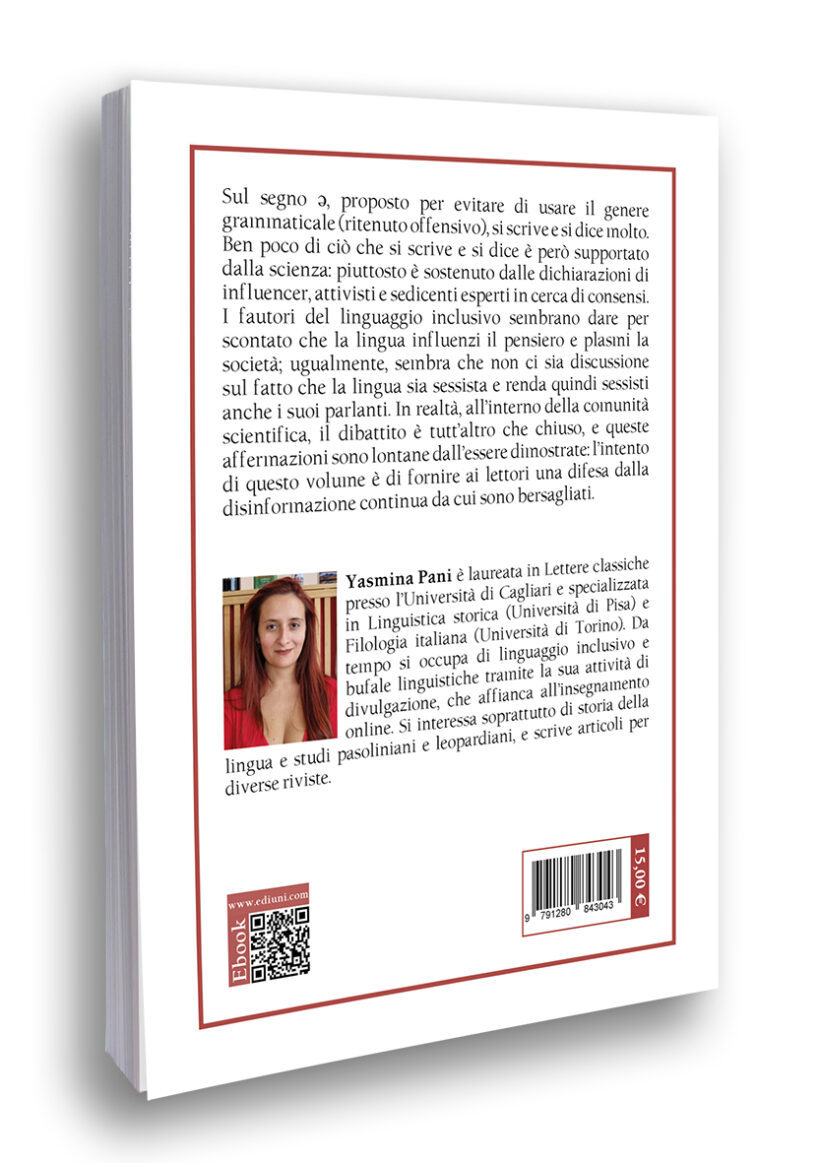 Sul segno ə, proposto per evitare di usare il genere grammaticale (ritenuto offensivo), si scrive e si dice molto. Ben poco di ciò che si scrive e si dice è però supportato dalla scienza: piuttosto è sostenuto dalle dichiarazioni di influencer, attivisti e sedicenti esperti in cerca di consensi. I fautori del linguaggio inclusivo sembrano dare per scontato che la lingua influenzi il pensiero e plasmi la società; ugualmente, sembra che non ci sia discussione sul fatto che la lingua sia sessista e renda quindi sessisti anche i suoi parlanti. In realtà, all’interno della comunità scientifica, il dibattito è tutt’altro che chiuso, e queste affermazioni sono lontane dall’essere dimostrate: l’intento di questo volume è di fornire ai lettori una difesa dalla disinformazione continua da cui sono bersagliati.